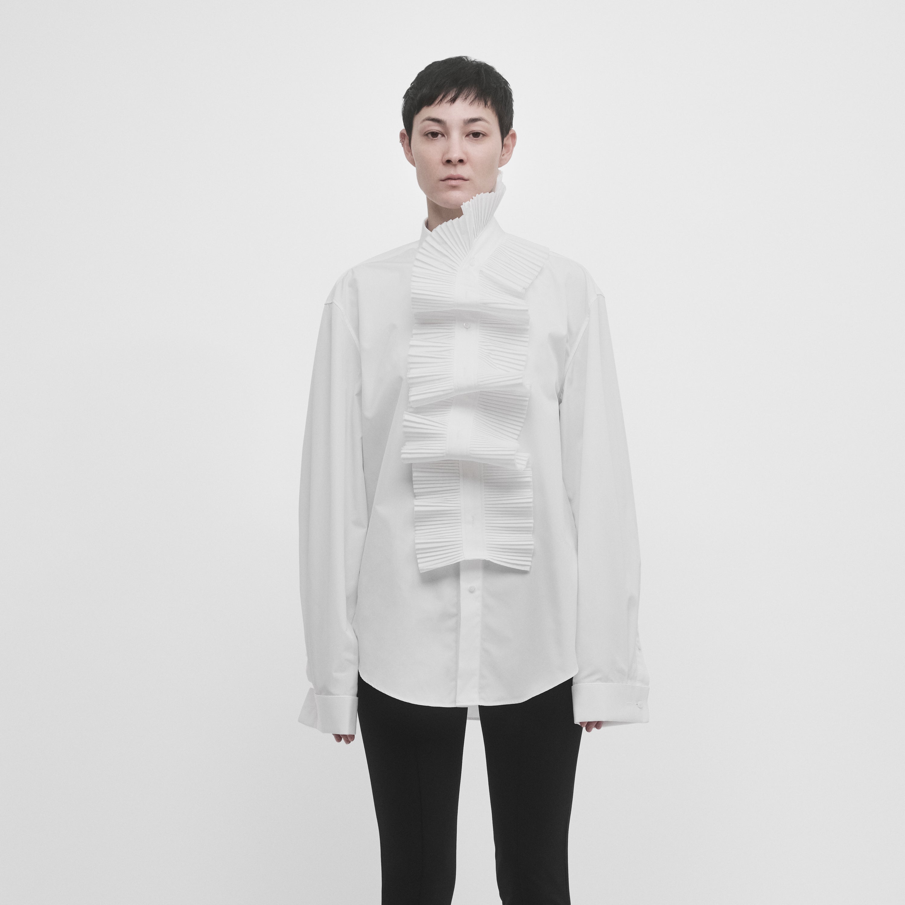 DOUBLE CUFF SHIRT WITH PLEATED PLACKET