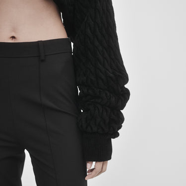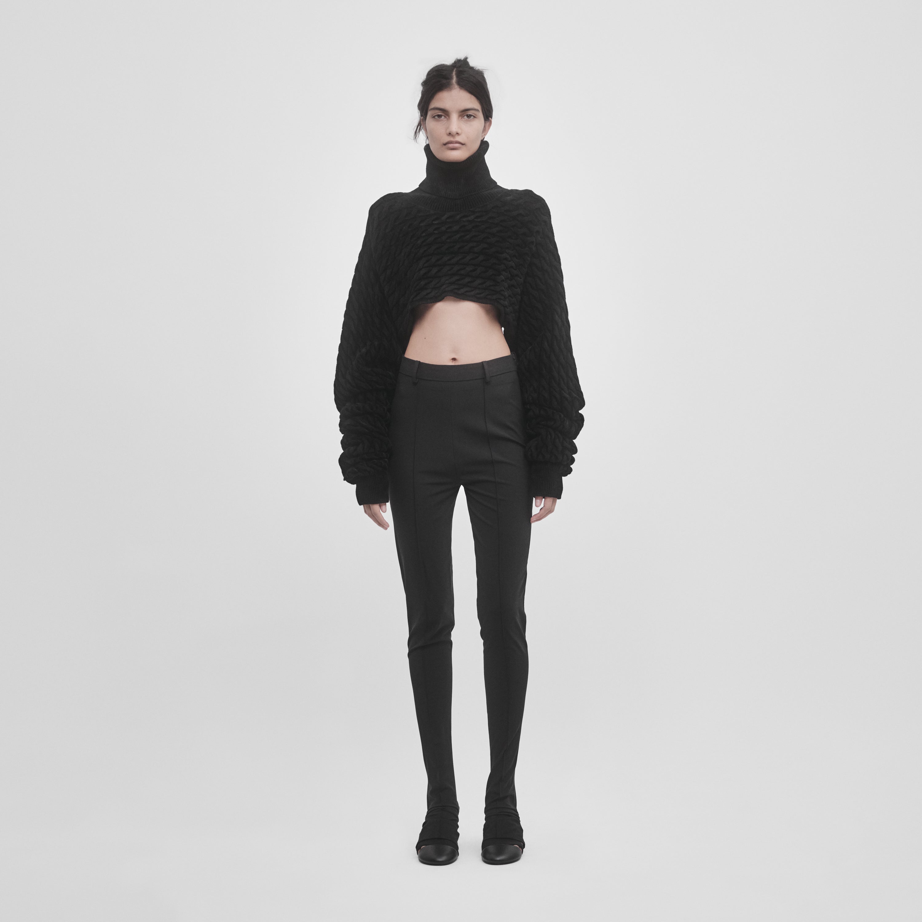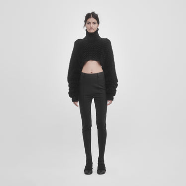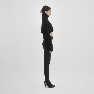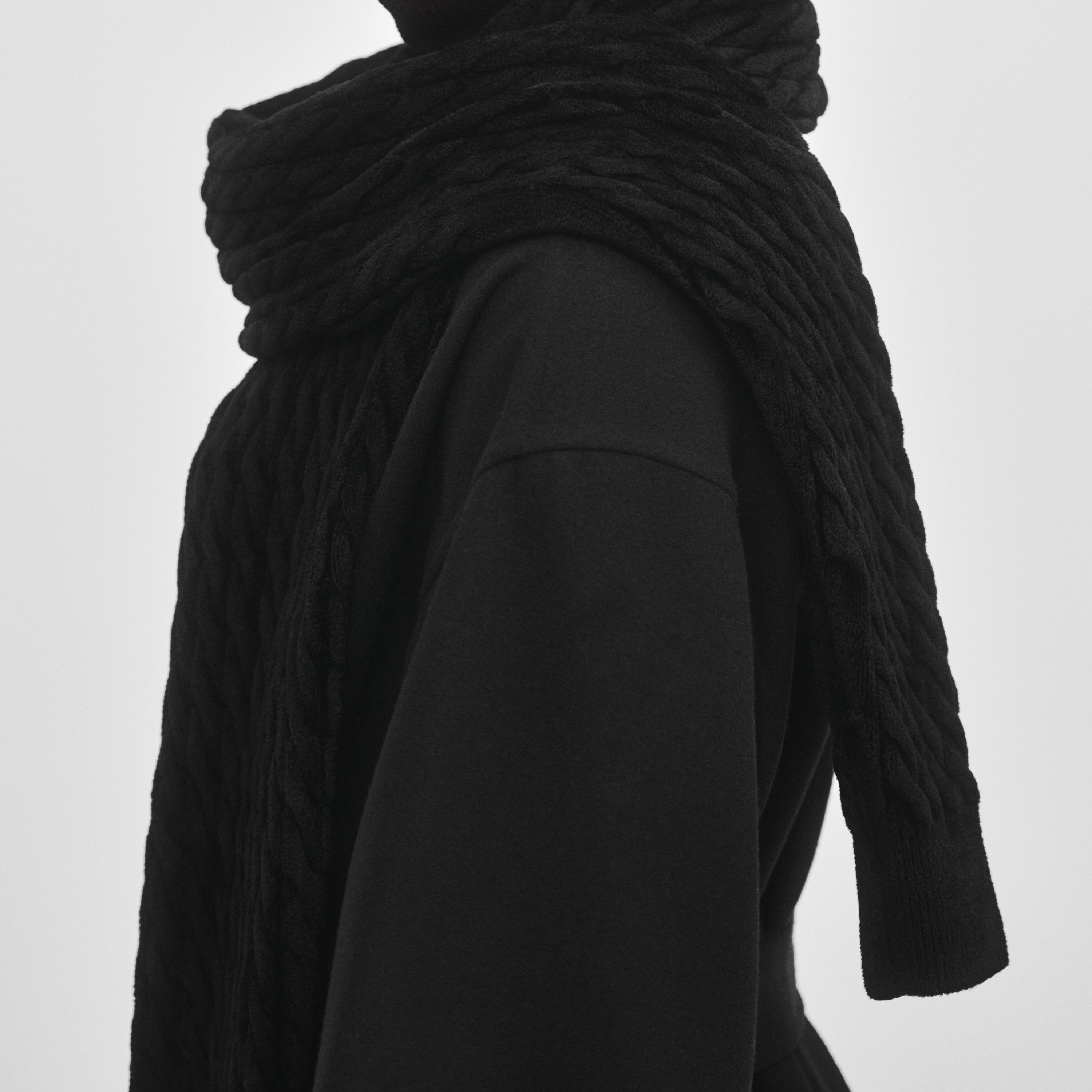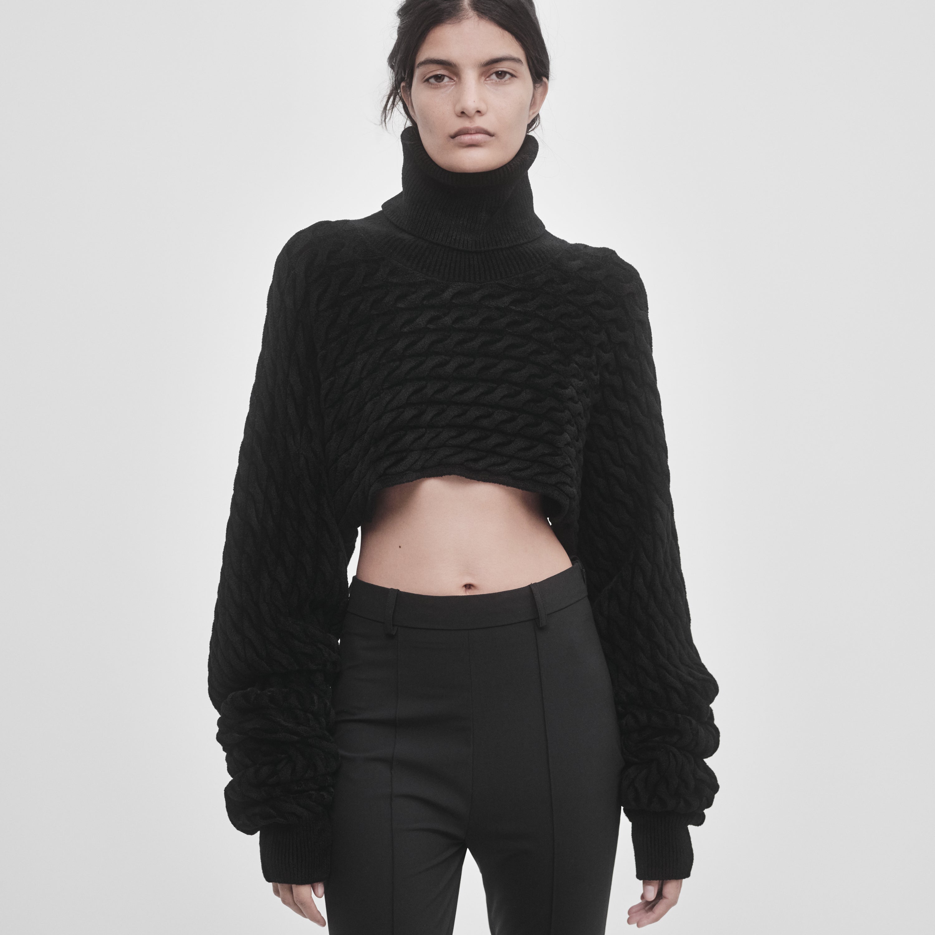 Very soft chenille-viscose knitwear top with a turtleneck and a studied cropped silhouette. The piece can also be worn as a scarf and styled over an outerwear layer.