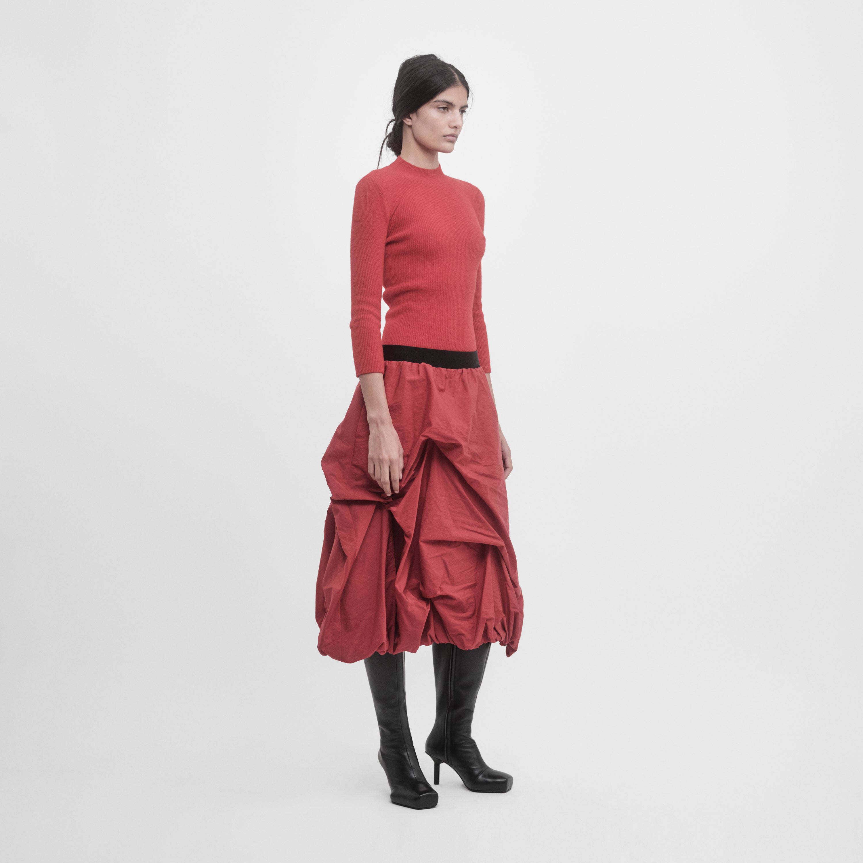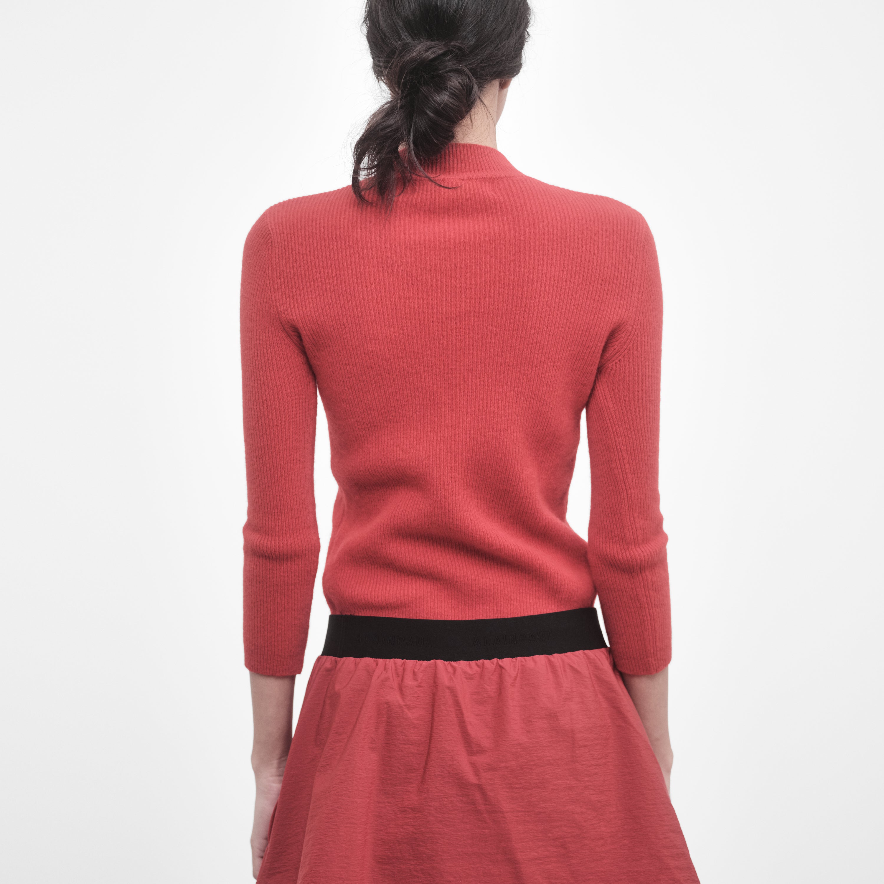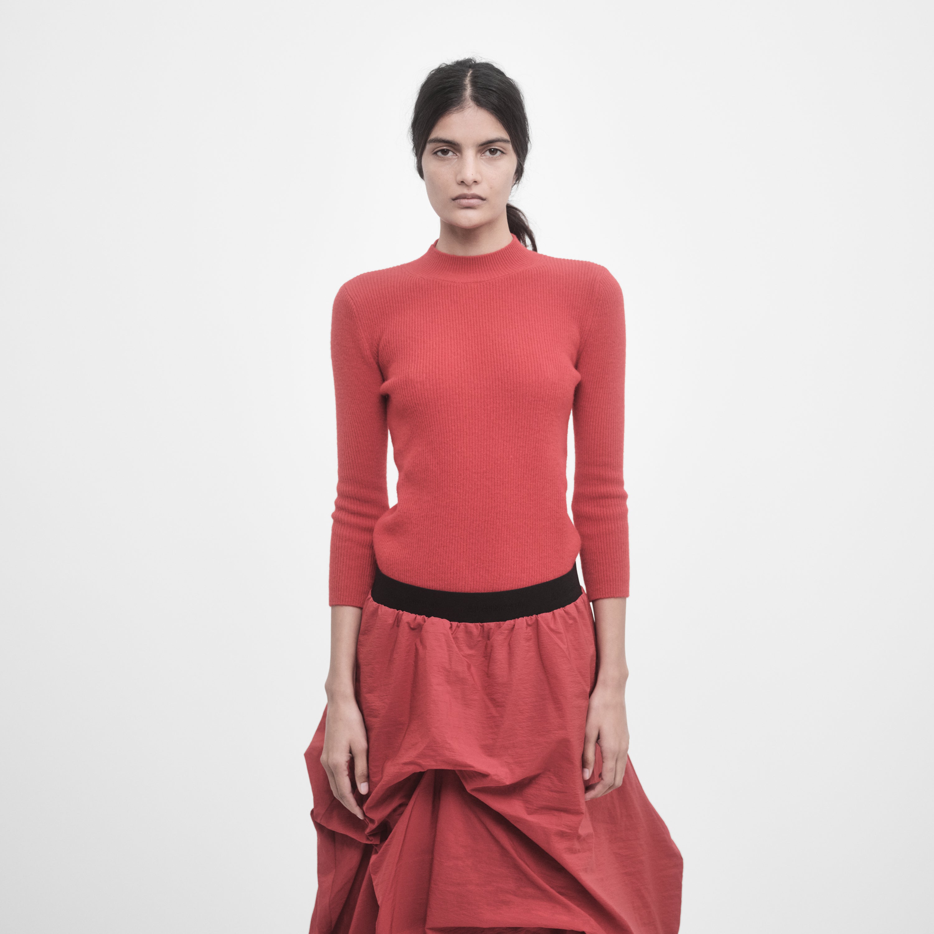 Fitted rib crewneck sweater with three-quarter length sleeves. Crafted in Belgium, it combines cashmere and virgin wool for softness and breathability.