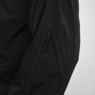 Conçue avec deux poches latérales, une fermeture éclair en nylon noir, un détail de surpiqûre pipe line ton sur ton et un patch en caoutchouc avec l logo embossé sur la manche, la pièce conserve toute son essence fonctionnelle. Fabriquée en nylon technique léger.