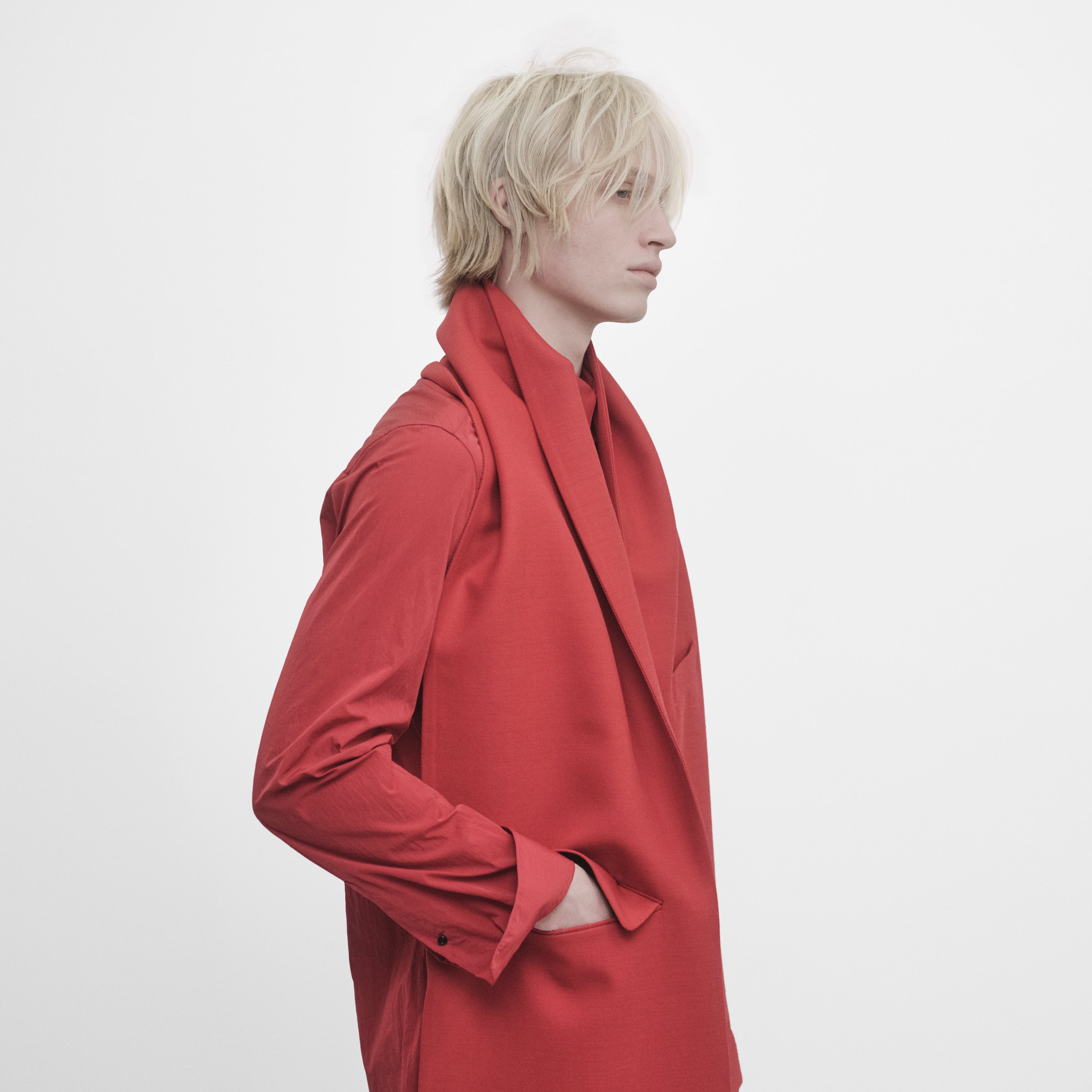 L’écharpe tailleur trompe-l’œil crée l’illusion d’un manteau structuré. Conçue avec deux poches plates fonctionnelles et finie avec des boutons naturels en corozo. L'écharpe est réalisée en laine tricotine souple.