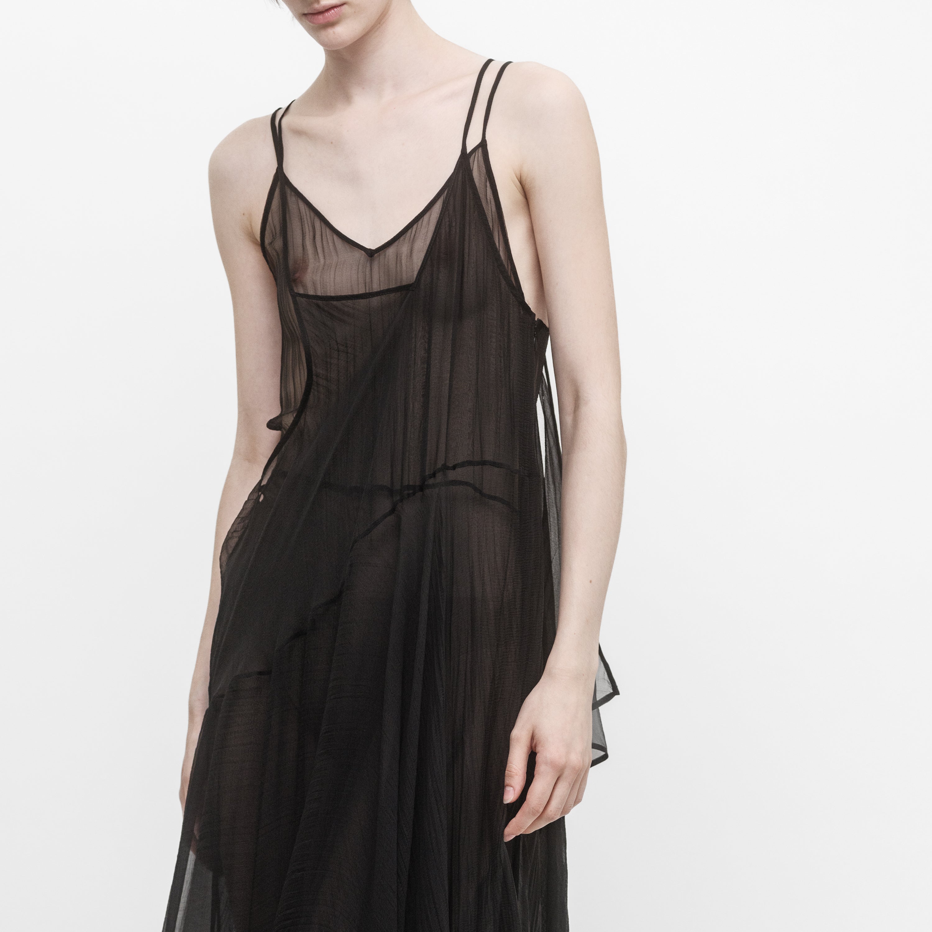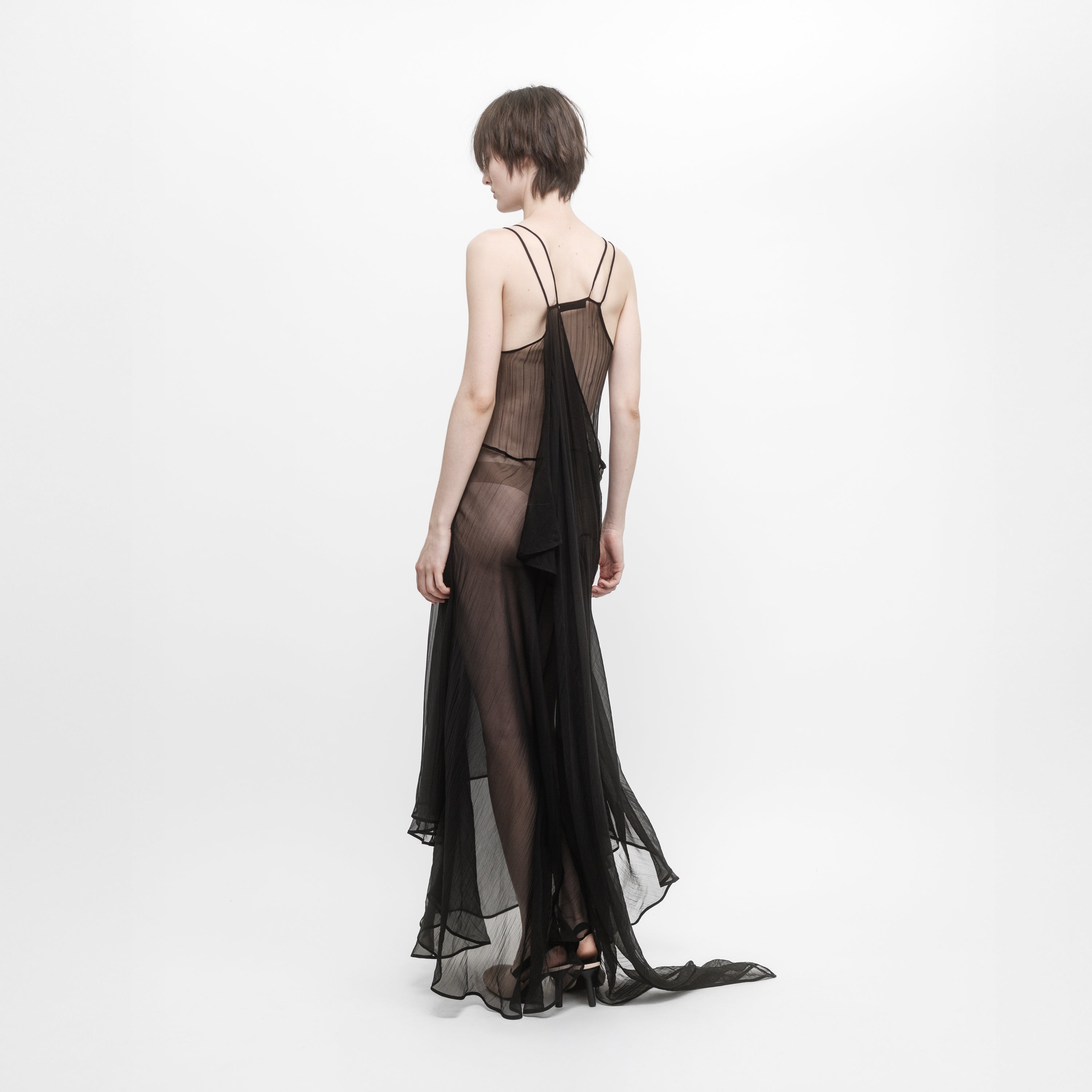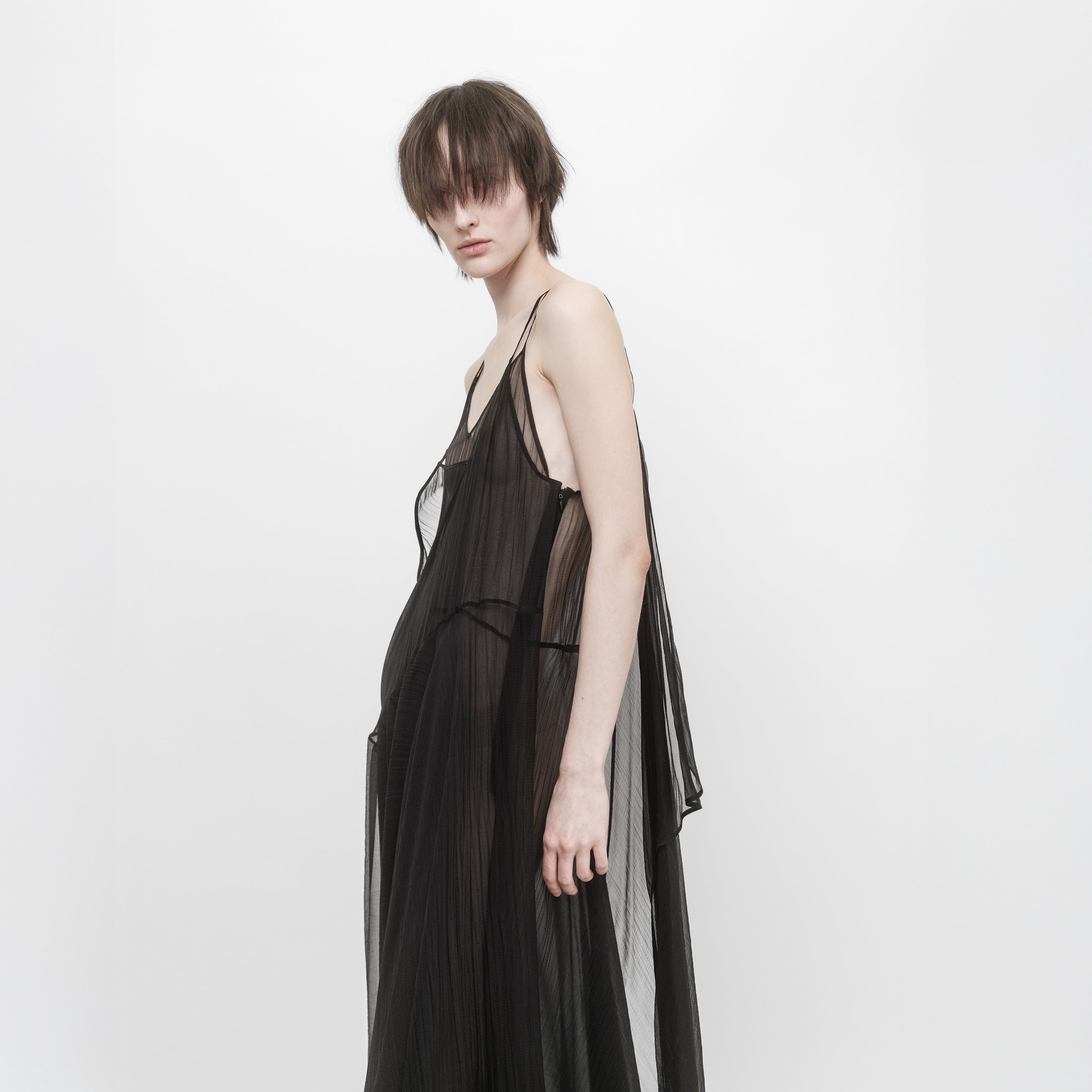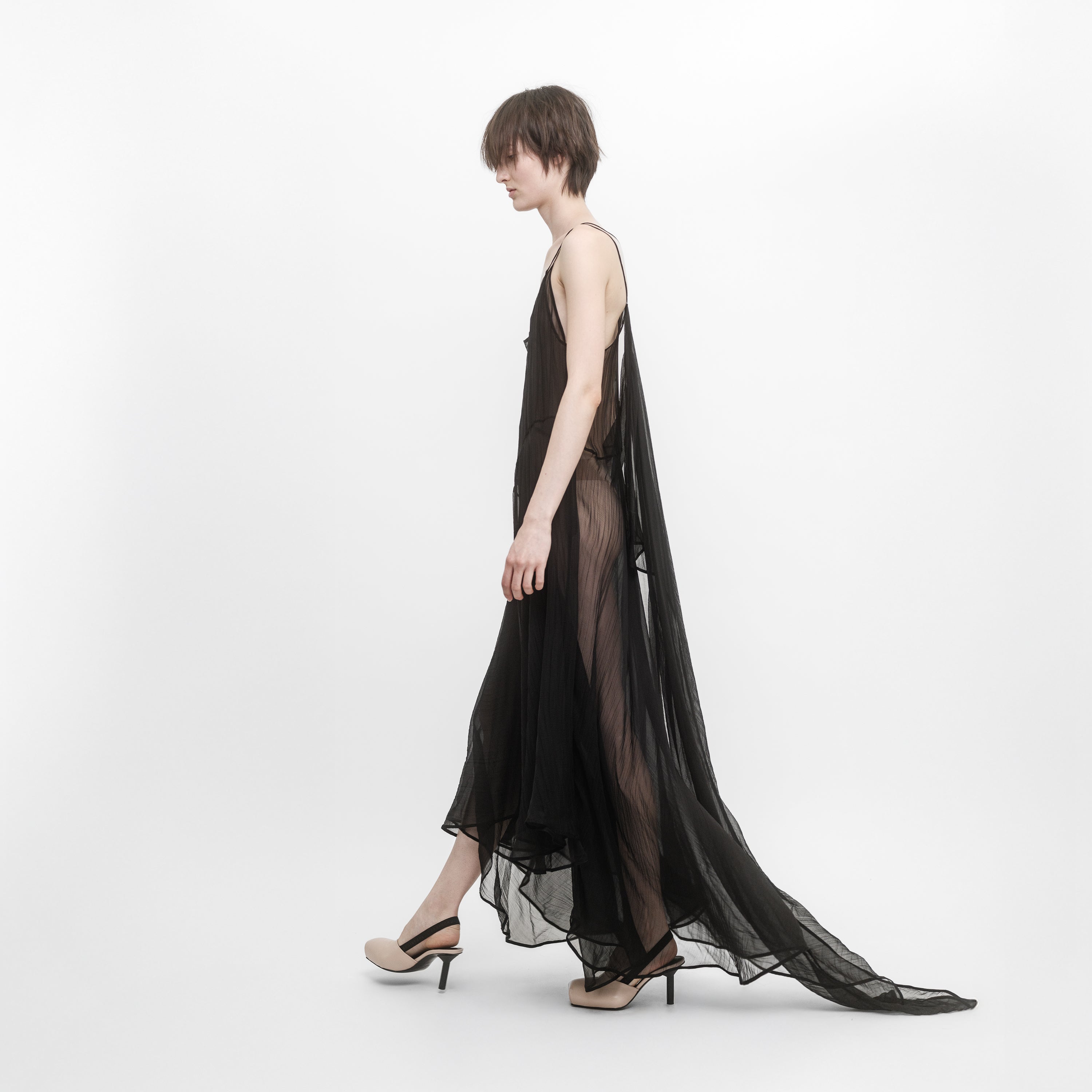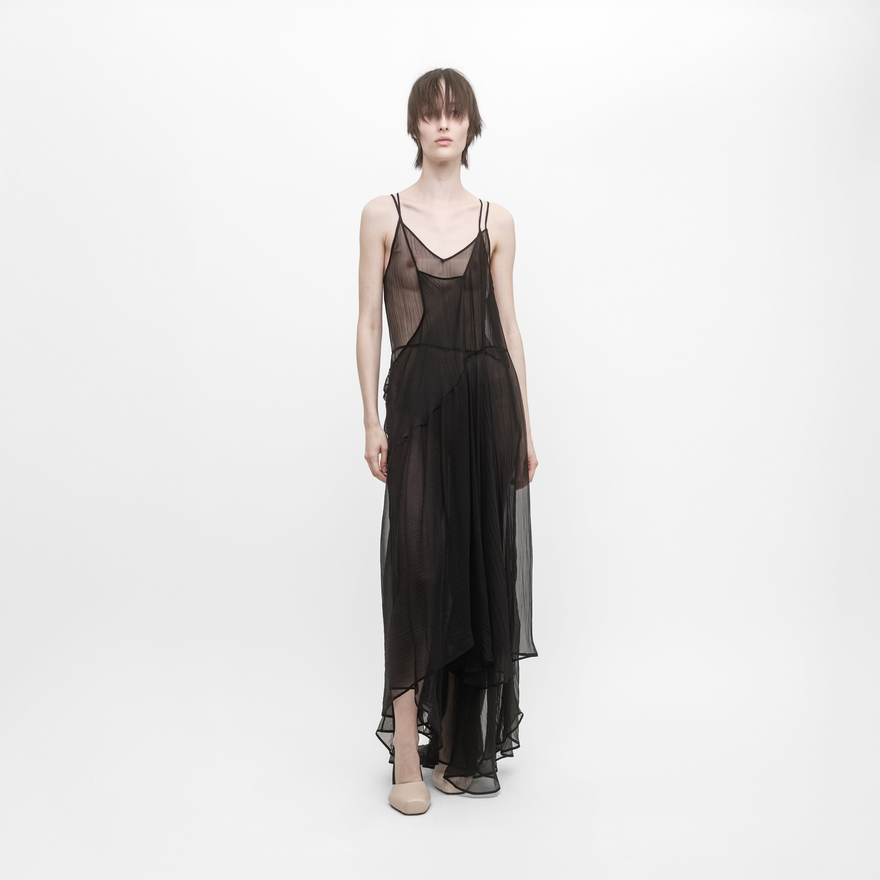La robe Pina est réalisée en chiffon de soie avec une construction étudiée à deux panneaux. Asymétrique et sans manches, elle se ferme par une fermeture éclair invisible sur le côté et crée une silhouette fluide et légère.